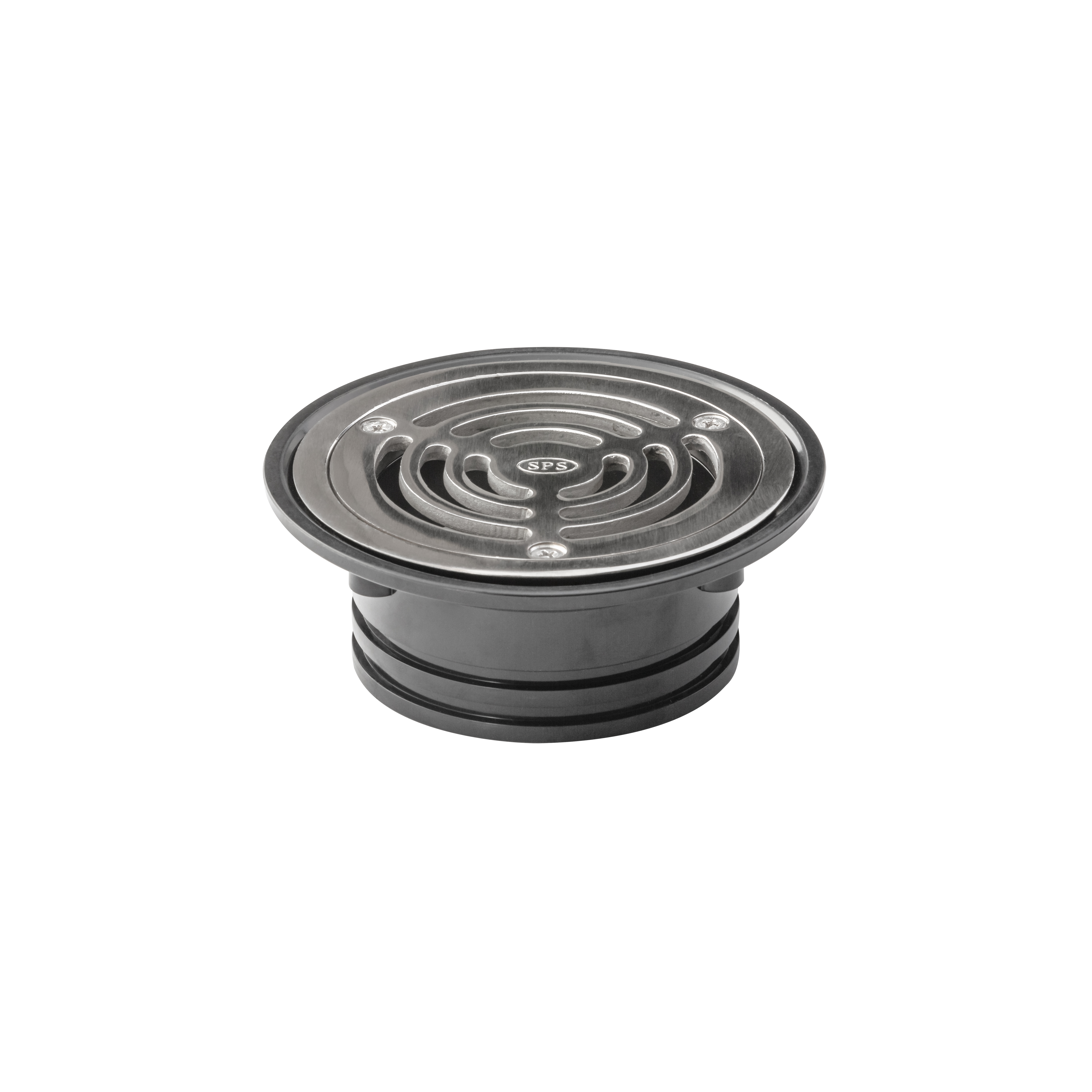150mm round 304 S/S vinyl floor waste w/ 1.25″ portable bath socket and ABS lower body push-in 100mm